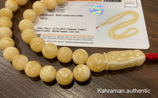This is a unique collection of some of the rarest and finest curated premium and antique natural Baltic amber rosaries and stones in the world. There is only one piece of each rosary